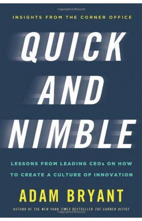 Download quick and nimble lessons from leading ceos on how to create a culture of innovation Epub By Click Button. quick and nimble lessons from leading ceos on how to create a culture of innovation it’s easy to recommend a new book category such as Novel, journal, comic, magazin, ect. You see it and you just know that the designer is also an author and understands the challenges involved with having a good book. You can easy klick for detailing book and you can read it online, even you can download it
